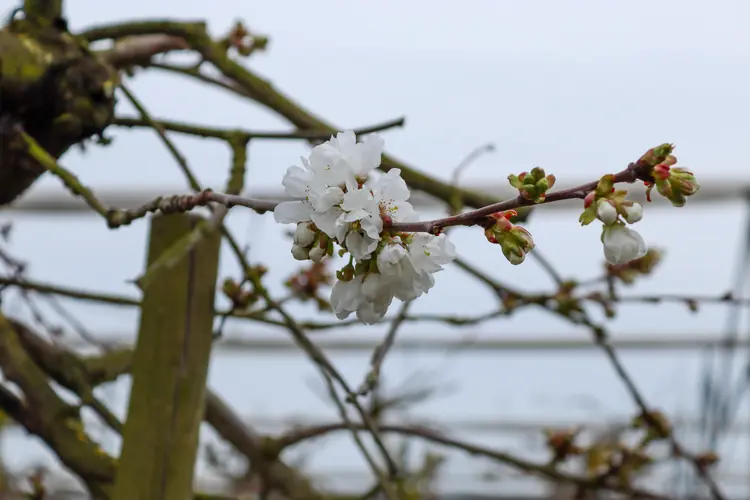 Met sneeuw op de takken en nog geen bloesem te zien. Dat is ook niet gek: het bloeiseizoen laat nog even op zich wachten.