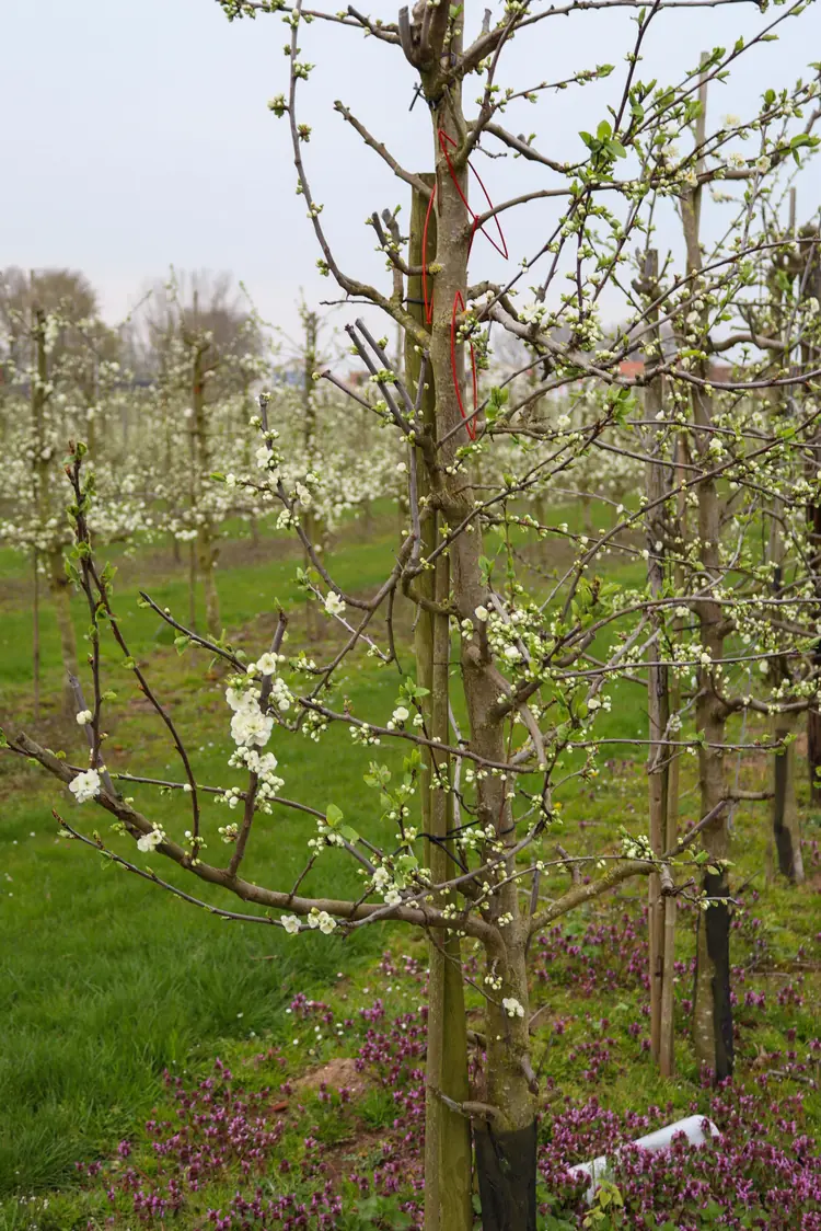 In een deel van de boomgaarden staan de pruimenbomen inmiddels al mooi in bloei. Het verschilt nog wel per boom: de ene is al wit van de bloesem, terwijl de andere nog even moet beginnen.