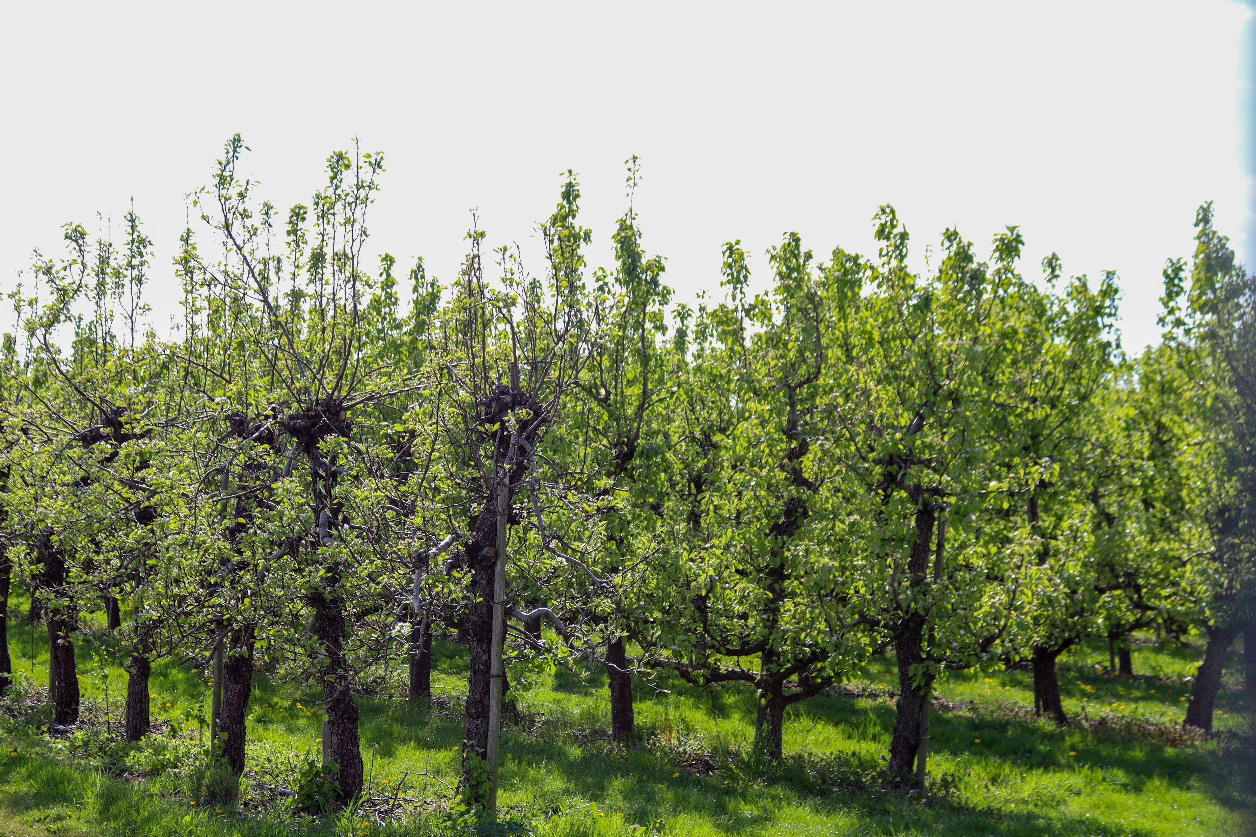 Alle bloesemsoorten zijn uitgebloeid. De eerste mini-kersen verschijnen zelfs al aan de bomen🍒! De laatste appelbloesem is op sommige plekken nog wel zichtbaar. De latere rassen bloeien nog, maar de bloesemblaadjes kleuren nu wel bruin en vallen langzaam allemaal van de boom.