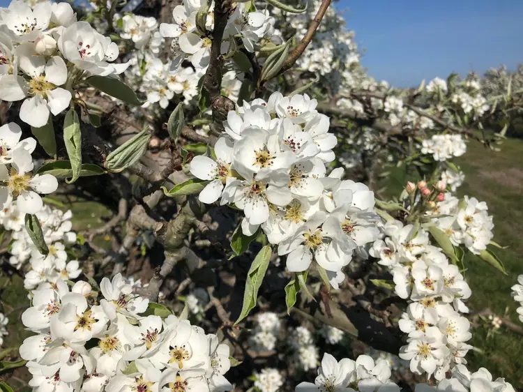De appelbloesem herken je meteen aan haar roze tint. Vooral de bloemknoppen die nog dichtzitten, zijn vaak prachtig donkerroze, kleine snoepjes aan de takken. Zodra ze openbloeien, kleuren ze lichter en soms bijna wit met een roze gloed. đ¤đ