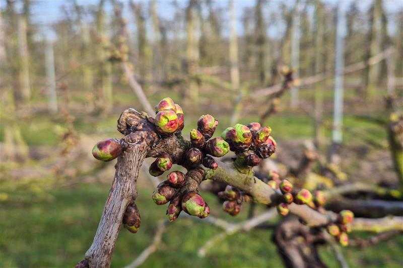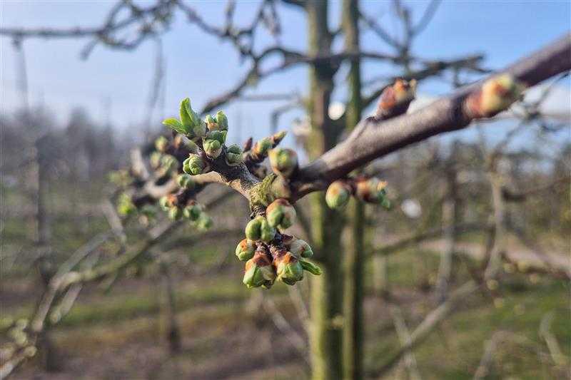 De knoppen zitten al in de bomen en met het zachte weer kan het ineens hard gaan. De verwachting is dat over zo’n twee weken de eerste bloesem zichtbaar kan worden.