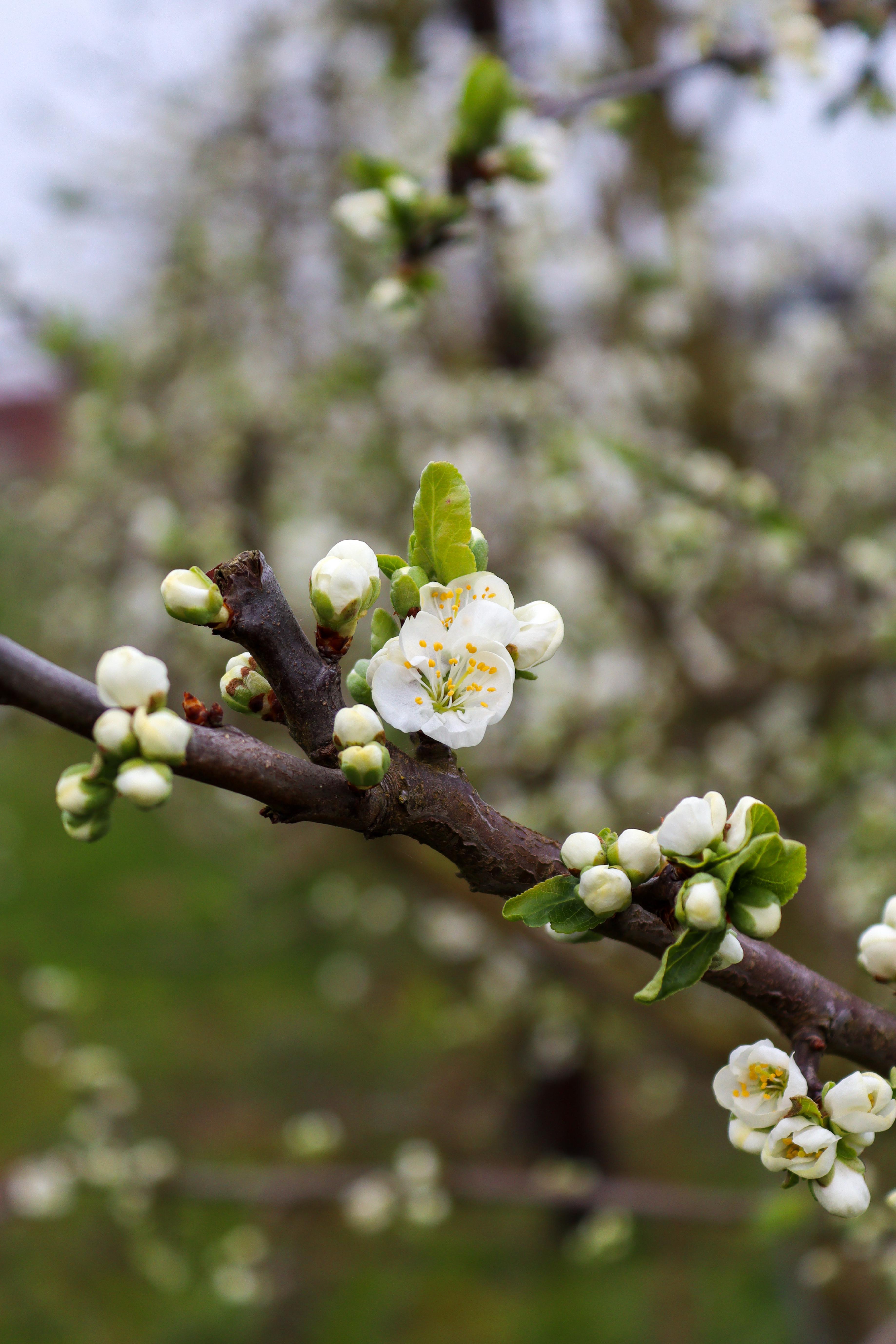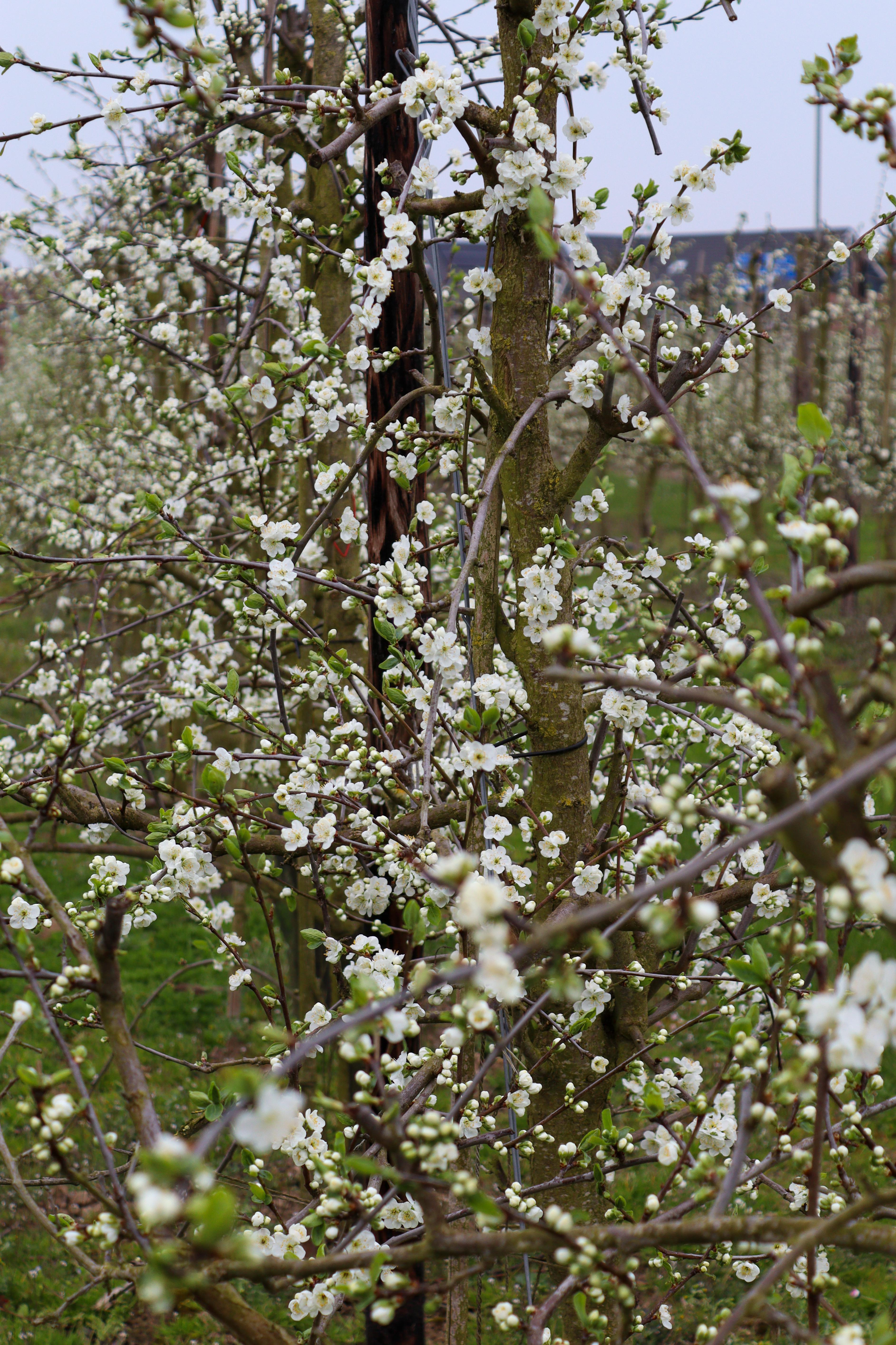 Zoals je hier kunt zien, doet elke pruimenboom het op zān eigen tempo šø De ene staat al volop in bloei, terwijl de andere nog voorzichtig begint.