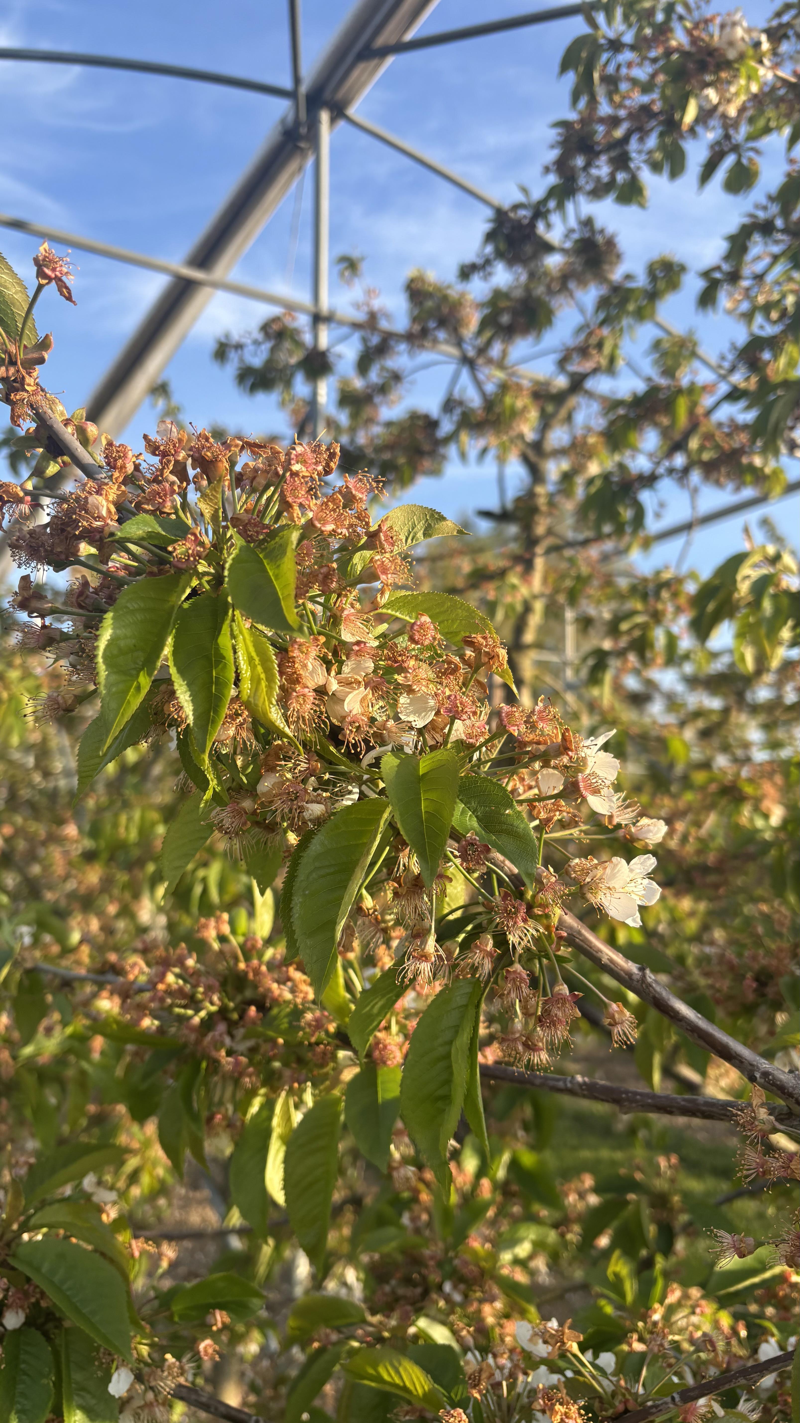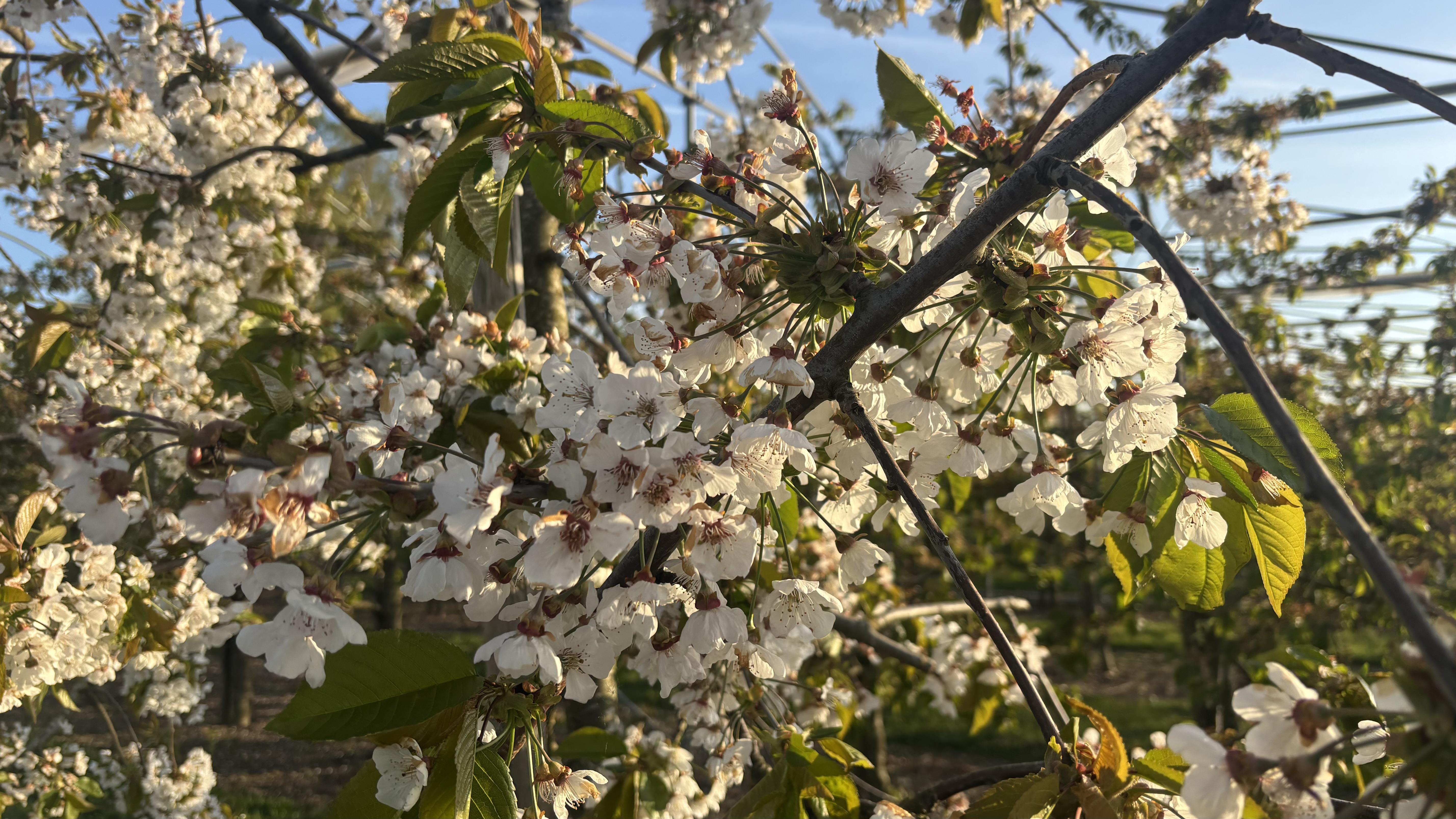 Op onderstaande video kun je het verschil van de bloesemstand in de kersenboomgaard zien: de vroege rassen zijn uitgebloeid, de latere rassen staan nog in bloei! 🌸